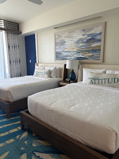 Read moreStayed in a 2 bedroom sunset suite, nice view spacious clean rooms , well appointed. The private hot tub on balcony was a nice bonus. Sofa bed not comfortable- fine for a small child ( which was the case) . Otherwise the room accommodated our family of 5 well . Not really anywhere to unpack in the bedrooms , 1 small closet and one “mistake closet that was only 6 inches or so deep and it made no sense. No drawers. Beautiful bathrooms but very unforgiving with heavy glass and sharp edges and tile everywhere, slippery floors. We had several stubbed toes . The door to the master bedroom wasn’t trimmed enough to allow you to fully open the door without a fight- again several stubbed toes. Very expensive in the Joe Merchant provisions store ,the cheapest bottle of water is over $3 tax and gratuity are added to everything single thing. The 12 Volt bar is by far a best spot to sit and have a cocktail with a view but the hours are only til 8 pm. The drinks I’m sure by design are not very strong, but the drink in the blender is worth the purchase for later refills. The water park was great fun but closes at dusk, and the slides could use a cleaning at the very top- overall clean though and very fun. the adult pool ( infinity pool ) on 4th floor is heaven, although there always seems to be dip$hit$ that bring their kids - fortunately they don’t last long. The grueling looks from couples trying to get away from tiny humans scare them off quickly. The water here is crystal clear and protected by the jetty with the “ugly view wrecking-round soon -to -be opened restaurant-“ you can snorkel and paddle board right here. For the most the water was clean (a few straws we picked up ) we saw a turtle eating the grass and lots of fish. The beach just to the left of the resort is public but the resort itself was not over crowded. Over all a descent experience- just be prepared to spend money- we went to the store and bought a few cases of water just to save on an essential need, stay out of the fish fry area at night no matter what anyone tells you- it’s super sketchy with a lot of homeless and drugged out characters walking around. Tons of stray dogs . The giant screen at the pool could be used better- maybe play old Buffett concerts instead of the news - I’m trying to escape reality. Staff was friendly overall especially Keross the life guard! And the ladies at Feeding Frenzy-Would love some more entertainment on property and more jimmy Buffett music playing outside. - lockers are available at pool but we felt perfectly safe leaving our bags at our chairs with no real valuables inside. It’s location is sandwiched between the cruise docks and a public beach so there is a lot of activity, we didn’t mind watching the cruise ships come in and out of port , but it’s a loud noisy area , lots of sirens and street noise, mostly blocked out by the heavy glass. we stayed on property after our scary “fish fry” outing . Would overall recommend but definitely see room for improvement at this resort from an owner and managerial level. Needs a bit stronger...