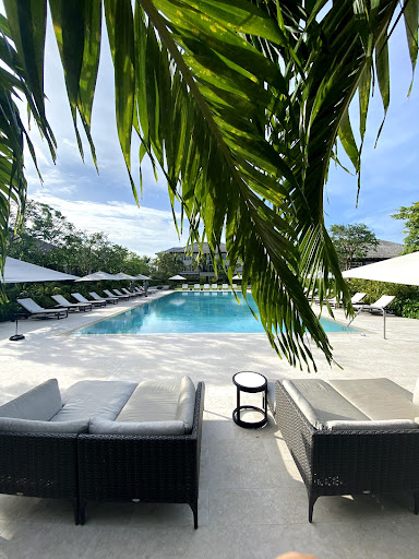 This is a beautiful hotel and property with only 30 rooms. It's in a beautiful part of the island, feels quite exclusive and upscale. The pool is huge and plenty of loungers. They also offered fitness sessions in a lovely studio. There is even a movie theatre! There are three restaurants onsite which are fabulous, two which are fancier for dinner, and one that is for breakfast, lunch and drinks. We ate at all and our dinner at Mogano was the best of the trip. Shima was also amazing. The daytime restaurant turns into a bar in the evening. The grounds are beautiful, everything was spotless and the staff were so lovely, polite and helpful. When there was a mishap with the shuttle we ordered to take us to the airport, they quickly jumped into action to arrange another one which came quickly so we weren't late for our flight. Another perk of this hotel is that while it isn't on the ocean, they have a partnership with a local beach club and you can use it. Just have to ask reception for the shuttle to take you over, it's about a 5 minute drive. The beach there was wonderful, amazing water and sand, no need to pay for towels, chairs or umbrellas, it's all included for hotel guests. You can also get drinks and food there.