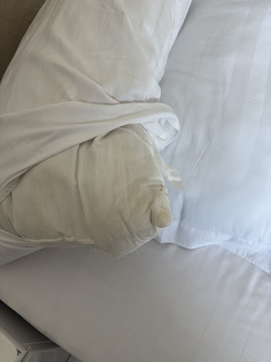 أتمنى كلامي يوصل لصاحب الفندق.. حرام فندق بهذا الحجم وبهالموقع الرائع يخسر زباينه — بسبب الفساد وعدم النظافة وتهالك السجاد والأثاث - (وطريقة تعامل من أمنتهم على مالك وحلالك مع الزبائن)..