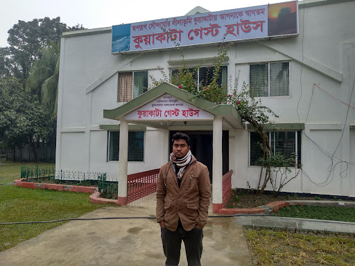 Kuakata guest House was a real find. It is set back from the main road of Kuakata and so much quieter than the hotels on that road. It is a 2 or 3 story sparklingly clean, airy, friendly place. Manager Helal can arrange just about anything you need, from onward bus tickets, to trips into the surrounding waterworld. It is a short walk to the beach, passing tea shops, restaurants,a row of the BEST barbers (who include a facial and massage as part of the deal). The market is right down the street. The 3-hour express bus back north to Barisal starts about 3 minutes' walk down the main road. Kuakata has charm, and this hotel has even more! There is no restaurant yet, but tea is...