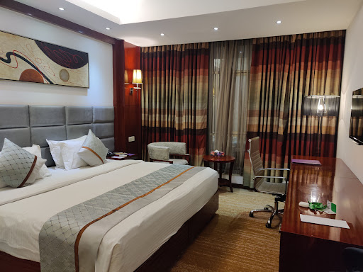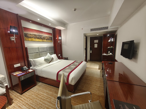 Read moreThe hotel had quite an oddly designed lobby with little space to move around but the receptionist was delightfully warm & welcoming and remained calm & explanatory even when problems arose. The wall paintings, bedding, and furniture looked luxurious in our room but some tables were made of board instead of planks of wood, which were in real need of repairing since the paint started chipping off and some parts had cracks. Also, they provide "complimentary" food & drink items which are by no means free, you"ll be charged extra for them at checkout. The place around the hotel was serene and clean, I didn't get a chance to catch the view though. The bed & mattress were defiantly soft & comfortable which was the best part of the overall experience. They didn't have much tech inside the room but the bathroom was fancy, although I did NOT enjoy the fact that the bathroom door had slits in them through which anybody in the room could peek while I'm over the toilet! Not to mention it allows unwanted noise from the bathroom to be heard outside. And most importantly the room-staff took too long to arrive at the door when there are...