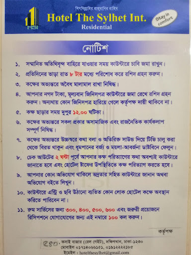 I visited Hotel the Sylhet international 01june. Here my experience was worst ever of my lifetime! Here I met hotel boy probably manager named Zabed or zaber !! I want to recall him a rascal as at the morning he deal with me about the price and also give me the hotel card. Then when I went there with my family and legal documents,he then print it all including my national id and other papers then he(manager) increased the price saying he didn't deal with me before! He also claimed for extra tips. Then i have to return back with my family after this situation as my family member was feeling unsafe and also me for his such kind of behaviour. I have never met such type of rubbish hotel stuffs in my lifetime.Highly not...
