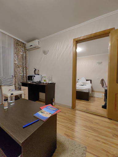 Read moreОстановились в этой гостинице семьёй, с 29.07 бронировали на двое суток , номер люкс.||Читала я отзывы прежде чем поехать сюда, было много негативных, но я всегда спокойно отношусь к таким, с мыслью "всякое бывает, у нас может такого не быть".||Так вот, заселили нас. С виду гостиница обычная, внутри аккуратно все, по крайней мере холл и коридоры. Оформили нас быстро, трудностей не составили. Номер оказался на 7ом этаже. Что скажу, номер на две комнаты, в одной кровать двуспальная, в другой два дивана и телевизор,каналы идут, но изображение в "снежинках", висит кондиционер, не включали, не знаю как он работает.Есть холодильник, который работает очень шумно. ||В номере запах не из лучших. Мебель старенькая. Освещения номера никакого очень темно, в коридоре настенный светильник, тусклый, в ванной одна лампочка и та, еле светит. Пыли много, на подоконниках, туалетном столике,кавролин уже как и мебель затерты и с пятнами,единственное белье было чистое.Были одноразовые тапочки, одноразовые средства личной гигиены(мыло, гель д/душа, зубная щётка с пастой, даже ресческа, и ватные палочки с ватным диском). ||Заехали мы вечером и оставив вещи пошли гулять. И только поздно ночью заметили что нет горячей воды, с крана текла летняя, ближе к холодной. И да, про слышимость сильную писали, так это правда, все слашно кто что делает на коридоре. Подумали что возможно на ночь отключили, но нет!! в этот период её просто оказывается не было по всему району. Это было плановое отключение. На ресепшене ответили что бойлер не справляется нагревать, либо нужно спускать либо сами не знают что делать чтобы текла тёплая.||Дальше ещё интересней!! Говорю дайте ёмкость, чтобы нагреть чайником и разбавить там. Сказали что горничная даст идите, ну пошла, и опа момент!! Дают ведро для мытья пола коридора!!! Это уже слишком простите!!! Не раздумывая, решили покинуть это место, вернув часть денег! И да, про слышимость сильную писали кто-то, так это правда, все слашно кто что делает на коридоре. ||На ресепшене работают адекватные девочки, пытаются хоть что-то сделать. Но сам отель на тройку даже не дотягивает((||Однозначно, туда больше не вернемся.||Настроение испорчено,...
