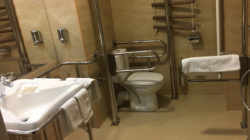 Далее: двухместная кровать оказалась составленной из двух матрасов. Сверху лежал наматрасник, но провал по центру всё равно чувствовался. Неудобно. Два одеяла вместо одного большого — кому-то понравилось бы, но мы с мужем привыкли спать под одним. В душе к стене привинчена стильная мыльница для геля, но она оказалась пуста (или не выдавала гель, потому что сломана). Снизу из ресторана слышна музыка и гул. Откуда-то сбоку из соседнего номера слышен громкий разговор двух весёлых девушек. На завтрак пришли в 8 утра и были первыми. Сами включали кофемашину и пытались разобраться в функционале. Потребовалось очистить отдел для гущи — звали персонал. Потом оказалось, что не работает тостер — снова звали персонал. Смешной диалог: — Помогите, пожалуйста, разобраться с тостером: он не включается. — А у вас оплачены завтраки? — Да, конечно. А вы думаете, тостер что-то подозревает?))