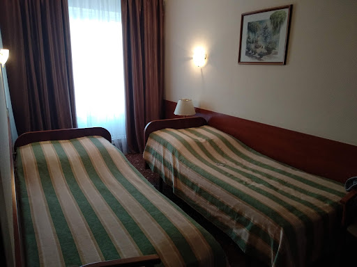 I liked Sputnik.||Many thousands Russian tourists like Sputnik, too – book in advance and check Russian national holidays, it is full-booked in May, June and January.||||The room is nice, quite enough space for one person and one suitcase. The bathroom is spotless, and the fixtures look – maybe they are just very well maintained.||The furniture looks new, too, although it is not – I’ve seen it on VT member HORSCHECK’s page, but quality stuff keeps good look for years. The chairs and, what’s more important, the bed are very comfortable (the matrass is of a higher standard, than the one in the hotel Beltransgaz). By the way, I’ll find out if the furniture is home-made, Belarus is well-known for its furniture, they should make their hotels a showcase for their products. For example, hotel Minsk, more central and expensive, has the same furniture, only in ruby shade.||The TV set ‘Horizont’ is definitely made in Minsk, it shows about 30 channels – two English-language, Arabic, Spanish and German (I noted there was no French). Then there are three Belarusian channels, one showing vintage Soviet films – I enjoyed a 1950s’ musical, they had good voices at that time.||||This makes me recall the plasma TV in the breakfast room with its intrusive pop songs, nearly drove me mad. Otherwise everything is OK; I mean, for hearty eaters it’s absolutely great – they have five sorts of meatballs for breakfast! For my part I would prefer them to spend the fund on cheese and bread, but I know my compatriots are positively in raptures about Sputnik’s buffet breakfast.||If you like vintage design, you will note the chairs – indeed they rather suit a 19th century boutique hotel.||||Speaking about times, Sputnik was built in 1963, and the outward design is rather modest. But guess what I like most about this place – the walls! They are no less than 50 – 70 cm thick; the temperature in the street went below zero when I was there, but it was very comfortably warm inside. No wonder they hardly need any health-threatening air-conditions in summer.||No noise either: trust me, I normally hear an alarm-clock in the neighbouring room, and my windows went out into the street – all quiet at night. There is a lovely little park in front of the hotel.||||So far I am quite happy with their service; I have asked numerous practical questions about the city, and they answer within an hour. Wi-Fi available and free, but a bit uneven.||||The location is not exactly central, but then their tariffs are affordable.||The distance from the railway station is 1.5 km on the map, it's about 15 minutes on foot, but with the luggage you won't like it; better take bus or trolley-bus, just two stops.||||P.S.||I've seen an ad on their site - they have vacant rooms during Ice Hockey Championship this May.||Looks like they could do with more guests, I'll see if I can figure out a sensible itinerary for budget groups to keep them busy.||||Unique Qualities: Functioning Internet site in Russian / English / German||||Two other important points – refrigerator in the room and cold/hot water dispenser on the floor; you can easily make your own tea/coffee, or even quick lunch with instant soup (I did exactly that).||||A bank and ATM around the corner – workable, I used it.||||Two budget ‘Dor-Ors’ shops (I’ll tell you about this brand in another tip) – food supermarket and haberdashery, where you can buy ladies’ cotton socks for $ 1.5, sun hat or soap. Oh no, soap is one thing you won’t need, they give you a full supply of toiletries in Sputnik – soap, shower gel, shampoo, toothbrush & toothpaste, hair brush and even nail file, and a new package...
