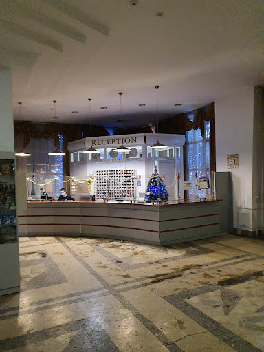 Read moreIt all started with our arrival late at night. We were welcomed by a receptionist who spoke reasonable English. We had to pay for our full stay in advance. Luckily they accept cards which seem not to be common in this city. The reception lobby is huge and fiiled with vast open space. I asked whether we could get a drink as we had flown from London and then travelled by car from Minsk airport. We were tired and thirsty. There was no facility to get a hot or cold drink. The room was a revelation. Talk about going back in time: this was out of the 1950's We had booked a suite and I am glad that we did. It consisted of an entrance hall with plenty of space to hang coats and leave shoes. There was also a large fridge in the hall. Off the hall were a bathroom and a lounge with a TV and a kettle. No tea or coffee sachets. The lounge led to the spacious bedroom with a lovely old king size bed. The bedroom also had access to the bathroom. We stayed 6 nights and were very comfortable in the rooms. The windows opened two ways and we were able to get some welcome fresh air which we needed as the hotel is very warm. The bathroom was OK. The toilet paper reminded me of what we used to call Bronco. It was grey in colour and a bit rough. The shower/bath was damaged and the bits off the plastic shower holder kept falling off. When, oh when are hotels going to learn that buying cheap plastic fittings is just not worth it? There was plenty of hot water and even some minute soaps and some sachets of shampoo. One or two of the tiles were screwed onto the wall in a precarious fashion and I was concerned that they might fall off while I was in the shower but fortunately I escaped scott free.||Breakfast was very very poor. Naturally the menu was in Russian. Fortunately my wife is a native Russian speaker so was able to assist. The waiting staff do not speak anything other than surly Russian. They do not make you feel at all welcome and some of them spend the entire shift sitting at the bar facing away from their customers. There are three set menus each day. You may only have what is on the menu that you choose. If tea is on your menu you may not have coffee or juice and vice versa. It is forbidden to mix and match. Quite frankly to the western taste the food is horrible. Pasta for breakfast with nothing on it? Dumplings which have been sitting around so long they have congealed into a solid mass. Bread which is so dry that it needs something to make it better but only some of the menus contain butter. Some of the dishes I understand were traditional food but there was no attempt to cater to an international clientiele. However you could order a beer for breakfast if you felt so inclined. I seriously suggest giving this part of your stay a miss. I must say though the little strudels were a highlight if they were on your choice of menu.||There is a bar in the hotel which seems to open sometimes but never on a Monday or a Tuesday. We were only able to go in once during our stay and were served promptly and efficiently. When I asked if they had any Tequila I was told that they had it in the restaurant bar upstairs. When I suggested, in English, that someone fetched some I was ignored. ||The basis of this is that this is a very old hotel which no amount of refurbishment can make better. It is very conveniently situated close to amenities and sights and of course shops. The staff at reception are OK, the room was cleaned very well but the rest of the staff should be shot at dawn every day for a week. One word of warning. When I booked I booked based on nights. The staff had taken this to mean that my final night was in fact my day of departure. Fortunately they had plenty of rooms available so I was able to "extend"" my stay. The suite was cheaper than an English Travellodge so maybe I...