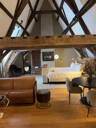 Check in was great, got my room upgrade to a brilliant suite and they thanked me for being Titanium member and offered me my free breakfast option with 8€ euro credit to spend at the bar. She even walked me to my room since in a special tower than my friends room and gave me an entire history breakdown of the hotel! The hotel itself is so beautiful in an old historic diamond factory there is so many random nooks and cranny with lots of beautiful archetecture but also the rooms are modernized and super nice!