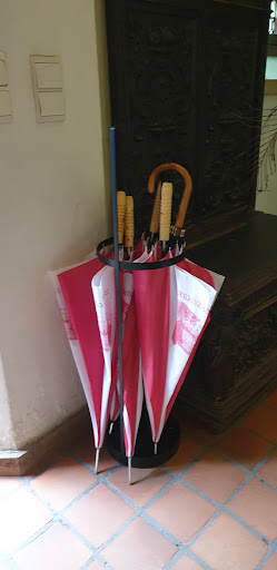 Read moreWe gingen met de familie gezellig ontbijten. Niet gelogeerd dus. De gebouwen zelf en de omgeving ademen oude glorie en zijn gedrenkt in rust en eenvoud. Geen tierlantijntjes hier. Oude geweven tapijten aan de wit gepleisterde muren. Metershoge plafonds met zware, duidelijk oude (originele?) eiken balken. Geen franjes. Geen extravagante aankleding. Soberheid troef. Het heeft wel iets, zo begeleid door een streepje viool- of pianomuziek op de achtergrond. Maar goed. Het ontbijt wordt dus aangeboden in het restaurant op het gelijkvloers, daar waar ook de hotelgasten hun eerste maaltijd van de dag tot zich kunnen nemen. De keuze was ruim genoeg; vers brood, krentenbrood, pistolets, sandwiches en alle gekende toespijzen. Roereieren, spek, taart, granola,... Geen culinaire uitschieters maar niks fout mee. In de afdeling 'dranken' zijn 3 soorten fruitsap te vinden. Daarnaast kan je nog de keuze maken uit koffie of thee. Zowel de koffie als het warme water voor de thee worden voorzien door een machine die in een mum van tijd ook een cappuccino of een chocolademelk kan toveren. Niet verkeerd maar weerom niets spectaculair. Persoonlijk had ik meer verwacht van de bediening. Tenslotte is dit geen locatie waar je in zwembroek rondloopt. Het is een nette bedoening. En daar had ik toch graag wat meer persoonlijkheid verwacht. Kosten drukken Of moeilijk vindbaar personeel? Zou wel kunnen natuurlijk. Wat kon er dan beter; de tafels waren voorzien van een smetteloos wit laken. Letterlijk. Uitgenomen een peper- en zoutvat en een sfeerverlichting stond er niets op de tafels. Verondersteld wordt dus dat je zowel je bord met eten, je drank als je bestek zelf gaat halen aan het buffet. Ik mistte de vraag of je (tenminste voor de eerste 'ronde') koffie of liever thee zou wensen. Of, dat het drankservies op de tafel klaar zou staan. Het komt uitnodigender over. Maar goed, niet te klagen verder....