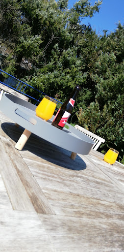 le cadre de la batisse, une nouvelle construction mais finie avec tout un tas de matériaux d'époque, prélevé par ci par là par les patrons, véritablement passionné par l'architecture les patrons, très très sympathique et qui non seulement sont absolument serviables de bout en bout mais qui n'hésitent pas donner de leur temps pour parler de leur passion ou region, surtout Monsieur, avec qui j'ai eu le privilège d'aller voir sa cave voûtée, véritable perle d'architecture à mon sens. notre chambre, avec une déco mi-vintage mi-arabe et une splendide douche spacieuse l'espace que l'on a tout simplement dans tout l'établissement, avec un très grand salon/pièce commune, une grande terrasse et un grand jardin où nos enfants se sont éclatés pendant que l'on prenait l'apero dehors au soleil (avant la drache nationale deux jours après) et dernier point, mais non des moindres, le coin sauna avec la piscine, rien que pour vous pendant 1 heure !!! 😀 = attention, il faut réserver son heure petit déjeuner correct