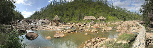 The whole property is absolutely gorgeous. The natural landscape is complimented by the work that the staff does to make it beautiful. The first time you step out to look over The Five Sisters waterfall is breathtaking. The thatch roof buildings with nothing but screens between you and nature are comfortable and well-appointed. We were here in mid October and in the day it is hot. The day we stayed here on the property, we just went down to the river beach and swam and laid out in the hammocks they have hung in the shade. By night time, when it’s time to get some sleep, it’s quite comfortable with just a fan or 2 blowing on you. The property runs on a private hydroelectric generator or a gas generator, so power is limited. That’s why there is no AC as of now.