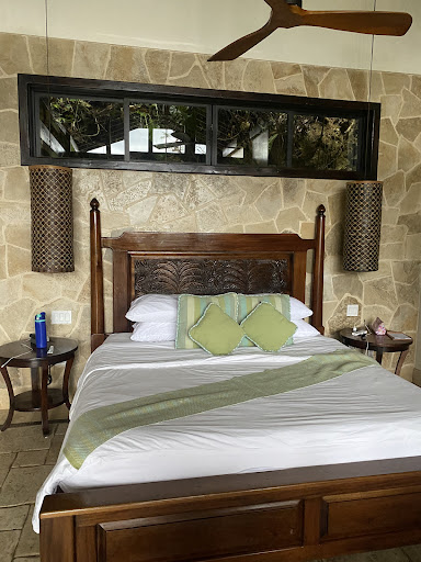 Rooms: Better than the photos. Spacious, clean, calming, great smell, great soaps. The couch in our room was so comfortable we fell asleep in it lol. Fantastic spacious showers. Clean drinking water from a water dispenser. And the views — you truly are nestled in the jungle. We had an avocado tree right in front of us, vines with leaves bigger than my body. Beautiful and unbeatable accommodation.