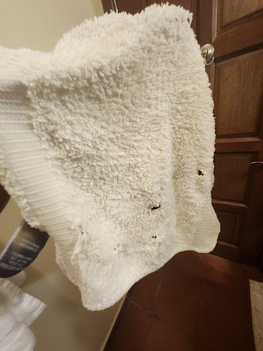 There was another sign in the bathroom directing you to use a black towel to wipe off your makeup of ne charged. There was no black towel. One of the rags I used was full of holes. Horrible water pressure. There were stickers in the shower, taped on, and faded showing the hot and cold water. The casita behind mine could watch my kid and I shower and disrobe. This is some 4-star hotel ish, for real!!!