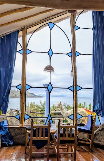 Read moreIf you’d like a new experience, this is the place to stay! |The hotel is located above the city with practically every cottage giving a perfect view of the lake and/or city. |Very short walk just 2 blocks down a steep hill to the central part of town. Or you can take a taxi as it’s only 100 bolivaros ($1 dollar).|Each cottage is made of wood and stone and some boulders. |There’s a small kitchenette too. |Showers are all stone but comfortable. ||Many are duplexes with beds at top and bottom.|Also a cute touch are the llamas walking all over the property. Four of them passed right in front twice while here. You can walk among them.||The fireplace is also fantastic. Real clay and they prepare it for you each day. ||There’s much more to detail but it would take multiple pages to give you the right feel. |I recommend looking at all the photos and read more reviews. ||You probably will meet the owner, Martín. He’s a super friendly guy and willing to help with anything you may need.||The prices are very, very reasonable as are all hotels in Bolivia! ||I’ve traveled to almost 90 countries now and this will be an experience like no other. |Just think of the cartoons from the 70’s called “The...