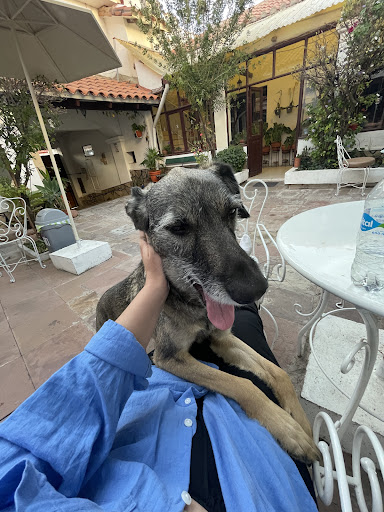 I looked forward to seeing Estrella the dog every morning and evening - she’s so calm natured and loving. There’s also a massive bird cage at the back with amazing exotic birds.
