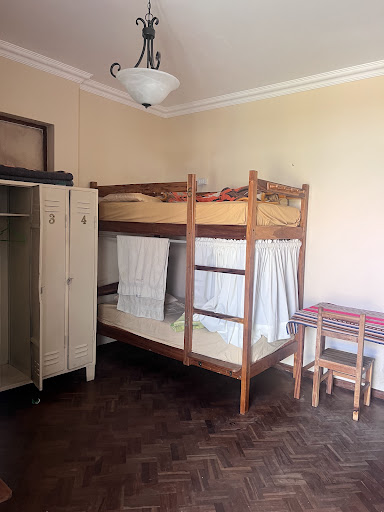 Read moreEin sehr schönes und ruhiges Hostel im Zentrum von Sucre. Viele schlafen hier, während sie in Sucre zur Spanisch Schule gehen, daher ist es sehr ruhig und KEIN PARTY HOSTEL (Ruhezeit ab 22.30 Uhr), was ich sehr zu schätzen wusste. Das Personal ist sehr freundlich und hilfsbereit. Ich habe im 8 Bett (White Dorm, 60 BOB Pro Nacht, Buchung über WhatsApp) geschlafen. Die unteren Betten hatten alle Vorhänge und jedes Bett hat eigene Steckdosen. In meinem Dorm war schön viel Platz, Haken an jedem Bett 🥰 (eine Seltenheit in Südamerika) und es gab große Schließfächer für alle und 2 Tische mit Stühlen. Außerdem hatte man das Gefühl dass die Leute schön verteilt werden auf die verschiedenen Dorms und nicht alle in ein Zimmer gesteckt werden bis dies voll ist. Außerdem wurden die Betten für nach dem gebuchten Datum noch geblockt, falls man verlängert, was fast alle immer wieder gemacht haben. Super zuvorkommend, dass man dann im gleichen Bett bleiben konnte. Das Gebäude ist etwas älter, wodurch das öffnen und schließen von Türen entsprechend nicht ganz leise ist und die Rücksichtnahme aller Gäste erfordert. (Gleiches bei den Schließfächern) 🚿 Badezimmer liegen außerhalb der Räume, zu Stoßzeiten oder wenn das Hostel voll ist, muss man schonmal warten. Guter Wasserdruck, heißes Wasser. Es gibt kein Frühstück aber 2 Küchen. Diese sind spärlich ausgestattet (dies könnte reichhaltiger sein) und Lebensmittel sollen zwar gelabelt werden aber es scheint sich leider nie/ selten jemand um die Entsorgung alter Lebensmittel zu kümmern. Großer Kühlschrank vorhanden und viele Ablagenöglichkiten für Lebensmittel etc. Alles ist recht offen und die Gemeinschaftsbereiche eher Outdoor, wodurch es bei schlechtem Wetter nur begrenzte Rückzugsmöglichkeiten gibt. Bei gutem Wetter ist der große Garten, die Dachterasse und die Hängematten ein Traum. Große Schließfächer für nach dem checkout oder vor dem checkin vorhanden (kostenlos) Für Mehrtagestouren Schließfach oder Gepäckaufbewahrung 5 BOB pro Nacht. 😕 Haarföhn an der Rezeption zum ausleihen. Bäckerei mit sehr leckeren Backwaren zu fairen Preisen schräg gegenüber. 👎Mankos: 🧑🍳Die Küche war dauerhaft dreckig, was leider an den Leuten lag und sich auch nicht geändert hat. Wäre schön, wenn von Hostel Seite hier gegengesteuert oder zur Not mehr als einmal am Tag gereinigt wird. Und sie könnte besser ausgestattet sein. Manchmal musste man auf die Suche nach Besteck etc. gehe . 🛜Das Internet ist leider ziemlich oft ziemlich mies bis gar nicht existent. Einfach nicht auf die Anzahl an Leuten...
