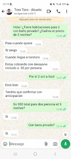 Read moreNous sommes arrivés à 3 personnes (un couple et une personne seule) avec 2 réservations incluant chambres privées et salle de bain privative chacune. Nous avons bien eu 2 chambres mais avec salle de bain partagée et la personne seule en dortoir de 4 personnes... De plus le WiFi gratuit ne fonctionnait pas au beau milieu de nulle part... Bref nous tentons de nous expliquer avec le gérant afin de trouver un arrangement ou au minimum une réduction sur le séjour mais celui-ci refuse catégoriquement et nous demande de partir en haussant le ton de manière impulsive sans raison. Nous avons bien entendu quitté le logement immédiatement et trouvé ailleurs. Aucun sens de la politesse et de...