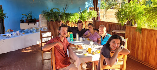 Read moreReceptionist was so lovely! She spoke to us in Spanish, not seeming to mind that we only understood half of what she said. She was very attentive and answered all our questions.|Wifi worked as well as any hostel I’ve been at (we managed to get better wifi at a restaurant and at max adventures jungle tour office later).|Rooms had proper mosquito nets which was comforting (although I didn’t see any mosquitoes in town anyway) and everything seemed clean. No safes or lockers but I didn’t feel unsafe and for only one night it wasn’t a big deal.||Breakfast was pretty decent: fruit, tea, coffee, cheese empanadas, bread, ham, jam and cake.|Hammocks on balcony were nice for...