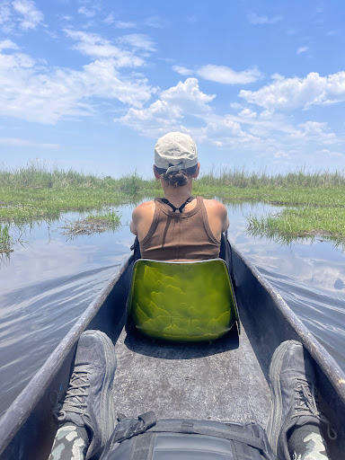Kay organized us an amazing private safari for 200 US dollars pppn in the Okavango delta. For the safari, we embarked on a mokoro to reach a small private island where one would set up the camp. To be in a mokoro was a beautiful and so peaceful experience. We had a private cook, Chef Letz, whose kitchen enchanted us (home made bread, chicken in an oven on the fire, fish from the delta). It was my birthday and Chef Letz made a delicious chocolate cake. We also had a private guide and went on two walking safaris. The guide was super knowledgeable and we learn a lot.