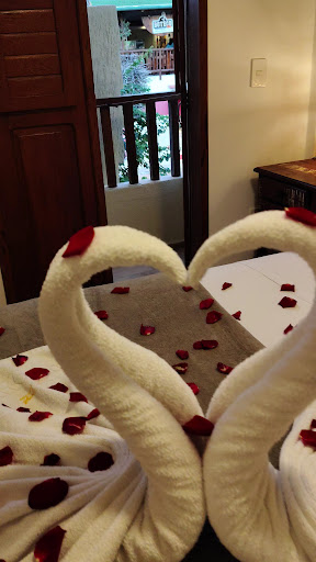 Que pousada sensacional!!! Não tive oportunidade de conhecer outras em jeri mas essa aqui deixou a gente muito feliz! Era um valor bom, pagamos 675 reais de 28 de junho a 1 de julho pelo booking. Nas fotos nem dava de ver bem mas era aconchegante, pedi pra fazerem uma decoração romântica fizeram tão bonitinho. Nosso quarto tinha uma vista bem legal, a cama era grande tinha frigobar, ar condicionado, máquina de café, local pra deixar malas e roupas... Enfim, era muito bom. E o café da manhã, um dos melhores que já provamos até hoje! Podia pedir duas opções de café da manhã além do que já tinha lá pra pegar a vontade, só o que tinha pra pegar já era perfeito, várias frutas, bolos, salgados... No primeiro café pedimos dois pratos cada um e nem damos conta de comer kkkk. A localização foi ótima pra nós, saímos durante o dia pra fazer passeios mas durante a noite era tudo pertinho ali pra conhecer. E não era barulhento pra dormir, só o ar condicionado que barulhava um pouco mas dava de suportar. Apartir de certo horário a porta era fechada da recepção e entravamos com senha e cartão. Muito tranquilo, ali na frente sentamos várias vezes pra "ver o movimento" super aprovado! Uma experiência...