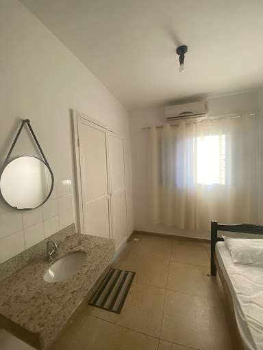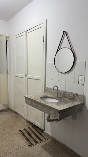 Fiz reserva de uma diária de domingo pra segunda casal, lugar simples mais muito limpo e organizado, roupa de cama e toalhas muito cheirosas, cama confortável, ar condicionado exelente, quarto é enorme tinha uma cama de casal, uma de solteiro, frigobar, ar condicionado, chuveiro com água quente, achei o quarto que ficamos muito interessante a pia fica dentro do quarto e o banheiro e dividido um lado e o chuveiro e do outro o vaso sanitário uma ótima ideia, famílias com filhos e uma mão na roda, piscina estava limpa estacionamento amplo, café da manhã estava gostoso, fomos muito bem recepcionados gostei bastante do lugar e o preço é muito...