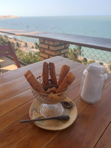Estadia com mais pontos positivos do que negativos a se colocar, na verdade, poucos pontos negativos e de fácil ajuste.||||Positivos: Vista linda, local é realmente paradisíaco. Pousada tem um ar aconchegante e bem caseiro com vista pra perfeita praia do litoral de icapuí. Um dos poucos locais nas imediações que oferece jantar, e não é de se reprovar, a comida é bem feita. Comi uma massa com camarão, uma delícia. O restaurante é aberto ao público.||Wifi liberado, com ótima velocidade de acesso.||Atendimento ótimo e super prestativo.||Por ser um dos restaurantes indicados para jantar, pelas poucas opções, o preço eleva-se um pouco, mas nada exorbitante. ||||||Ponto negativo:||A cama que peguei era um pouco desconfortável e pequena para casais grandes (rs). (Não posso falar muito, pois sou alto e minha esposa também), nossa cama é QUEEN SIZE. Fora isso, quarto é otimo, mas não dispõe de TV.||||O café da manhã tinha muita coisa boa a oferecer, mãs resumidos a uma mesinha pequena, o que não me convidou muito, e havia espaco para dispor de uma mesa boa para café. Talvez tenha sido o dia, mas estava...