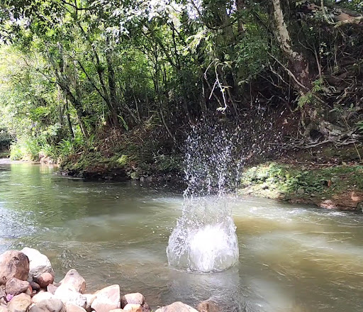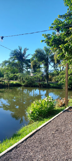 O espaço externo é encantador, com muito verde, natureza por todos os lados e um lago lindo que nos conquistou. Um lugar perfeito para relaxar e também ótimo para quem está com crianças — elas se divertem e têm espaço de sobra para brincar com segurança.
