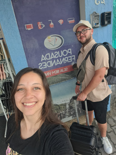 Read moreLocalização e atendimento foram os pontos altos para mim nesta pousada. Fica bem no centro, perto de tudo, mas para a praia anda um tanto (levei uns 20min até a praia dos anjos), o que pode ser cansativo ainda mais se tiver com criança (como eu estava rs). Mas tem taxi na porta, o que pode ser uma opção menos cansativa. Com relação ao atendimento, todos são muito simpáticos.. senhor Fernando uma pessoa super bacana, dona Maria e a moça da limpeza também, todos muito atenciosos. A pousada é pequena e o quarto que fiquei era amplo e confortável (cama boa e enxoval limpo e cheiroso), porém achei o quarto pouco ventilado e senti falta de local adequado para pendurar as roupas de praia molhadas (toalhas, biquinis, etc..) para que pudessem secar. Também me incomodou um pouco o cheiro do banheiro e umas mitinguinhas que tinham lá, não sei se é o cheiro do ralo mas tinha um cheiro um pouco desagradável. Café da manhã atende bem, tem o básico, embora senti falta de um 'ovinho' mexido. A Tv só tem canais abertos, então se chover e precisar ficar no quarto não tem muito o que assistir na televisão. Internet funcionou bem, o que traz mais opções de...