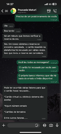 Minha estadia na Pousada Maturi foi de 16/01 a 20/01, com reserva feita pelo Booking para quatro diárias. A experiência ficou muito aquém do esperado.