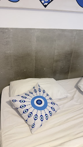 A temática mediterrânea, inspirada na arquitetura grega, é um charme à parte e se destaca como diferencial estético. O terraço no último andar (onde há uma Jacuzzi, que estava em reforma durante nossa estadia) rende boas fotos, com bancos brancos, detalhes decorativos e uma vista distante do mar.