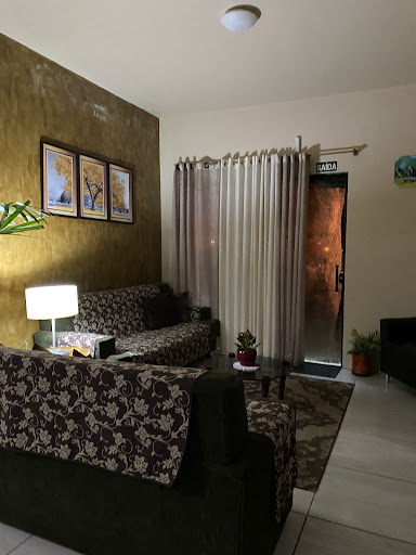 Ponto Positivo A Dona Vera nos recebeu super bem e deu dicas dos passeios, que já havíamos comprado tudo antes de nossa chegada. O café da manhã é bem farto e estava bem gostoso, exceto os pontos descritos abaixo, acho que poderia melhorar uma vez que tem uma ótima estrutura. A limpeza do quarto estava ótima, mesmo não podendo arrumar os quartos devido a pandemia, a Dona Vera nos ofereceu essa limpeza quando estivéssemos fora, uma vez que ficamos 3 noites. Tem uma sala de jantar que se não quiser sair pode solicitar o serviço de Tele Entrega (Delivery) e fazer as refeições ali mesmo. Nessa mesma sala tem água, chá e café disponível. Tem uma salinha de estar bem aconchegante para não ficar só dentro do quarto. Ponto Negativo Quando cheguei fiquei um pouco assustada, porque pelas fotos parecia diferente do que estava vendo pessoalmente, a Pousada não tem nome na faixada e fica atrás ou junto de um posto de combustível. O quarto achei bem pequeno para 4 pessoas, tem uma mesa na frente da cama de casal que achei desnecessárias, uma vez que tem um guarda roupa. A janela do banheiro estava bem suja de cimento, creio que seja devido a obra que está tendo na pousada para ampliação. O suco oferecido no café da manhã não é natural, os ovos mexidos todos os dias estava frio, mesmo estando...