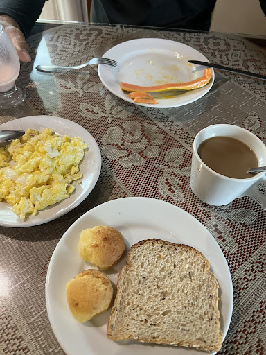 Pontos positivos: o ponto alto da pousada é a proprietária, D. Helena, sempre atenciosa, carinhosa, prepara o café com carinho e inclusive o serve fora do horário estipulado caso o hóspede precise sair da pousada mais cedo. O café é simples, mas muito honesto pelo preço da diária. Tem ovos feitos na hora, presunto, mussarela, pães, sucos, café de máquina, café coado, etc. A localização também é muito boa. Fica em um bairro bonito e pouco afastado do centro, ideal para descansar depois de um dia de passeios. O lago negro fica a 15 minutos (a pé) e o centro é acessado com uma leve de caminhada de 30/40 minutos. De Uber as viagens não levam...