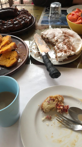 A pousada é charmosa, higienizada e o quarto que ficamos era bem amplo e arejado. O café da manhã realmente é bastante farto e delicioso. O restaurante na parte inferior, serve trutas deliciosas. Junte tudo isso ao som encantador da Beatris tocando harpa, mais a simpatia do casal (Beatris e o chef Marcos) e mais o excelente atendimento do garçon e não dá vontade de voltar para casa. Beatris e Marcos são muito atenciosos. Deram dicas de passeios e lugares para lanchar. Foram cuidadosos conosco. Meu marido teve crise de cálculo renal e Marcos prontamente nos deu informações importantes sobre saúde e nos forneceu a água com ph mais alto, que o ajudou. Com certeza retornaremos e indico a pousada e o restaurante. Gratidão Beatris e...