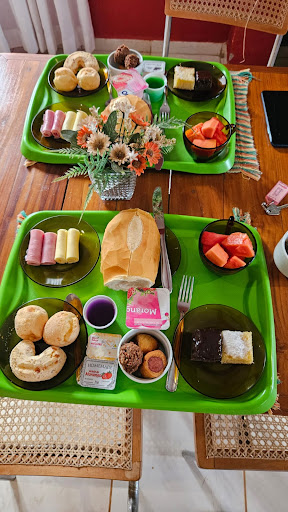 Read moreFicamos apenas um dia. E por conta que fui em um festival, fiquei pouco na pousada. Mas vi que tem piscina e outros ambientes compartilhados. O quarto achei pequeno, mas conseguimos nos acomodar (estávamos em 6 pessoas). Os jogos de cama e toalha estavam limpos e o quarto também. Não possui ar condicionado, mas não sentimos falta dele. Por ser uma cidade mais fresca. O funcionário Kaique nos atendeu muito bem e nos ajudou quando precisamos. E, o café da manhã foi servido em bandeja. Bem servido, bastante opções de comida e tudo parecia fresco. Entretanto, assim como eu, outras mesas também não conseguiram comer tudo. Minha sugestão seria perguntar ao cliente oque ele gostaria de comer, para assim evitar desperdícios. No mais,...