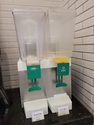 Read moreÉ um bom hotel com vantagens difíceis de achar: o chão é de mármore e as cortinas não são tecidos: não dando espaço para alergias. A cortina black out é ótima, o quarto fica bem escuro. De dentro do quarto não dava para ouvir ruídos vizinhos - que do corredor estavam bem altos. Cama confortável com roupa de cama extremamente limpa e cheirosa. Toalhas ótimas muito limpinhas e macias. Edredom, berço e travesseiros extras. Bom banho com bons sabonete, shampoo, condicionador e secador. 3 aparadores de malas, o que permite que todas as malas fiquem altas. Mini copa com torneira com água quente e microondas.