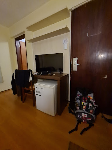 Quarto - Fechaduras de cartao costumam ser problematicas por si só. Mas a de lá dava problema quase todo dia, precisando de n-tentativas até se "adivinhar" quantas piscadas nos leds e quanto tempo precisava dar p/ funcionar. Em 2 dos 3 dias, precisamos trocar o cartao. No ultimo, o funcionario que nao gostou de sair do celular disse que era "por segurança" em caso de roubo do cartao e que, por conta disto, era preciso "recarregar" ao voltar da rua. Em 25 anos me hospedando em hotéis nunca vi isto. Dentro do quarto, um festival de horrores: TV de tubo em 2025, sem controle remoto, defeituosa (imagem aguada e apagada, sem contraste), pouquissimos canais, ar-condicionado de janela (ok) mas tambem sem controle remoto, frigobar enferrujado e com o congelador caindo, vazando agua pelo chao do quarto, 2 tomadas no quarto, uma com um pino quebrado dentro, papel higienico daquele rosa aspero dos anos 80 (o mais barato de todos), camas velhas, com colchao afundando e bordas rasgadas, cobertores de lã (tem gente, como eu, que tem alergia), roupa de cama curta, só 2 toalhas de banho por quarto e box que nao fecha 100% (desalinhado) deixando respingar agua do banho fora. Lixeira pequena e sem pedal para abrir. Pouco prática.