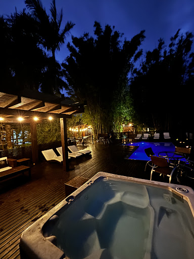 As you climb up a narrow road we begin seeing many charming inns and houses, our expectations grew wishing our was better than the ones we passed by. And that was just what happened when we got to the reception. We were very well received and a brief check in was all we needed to do get our keys. The Hospedaria das Brisa has two main buildings, one with the reception, restaurant, bar, pool deck and the jacuzzi and the other building with rooms building just across the narrow road. All paths are paved in cobblestones and they are down steps towards the room and upwards to the common areas, so it is advisable for guests that have no bigger mobility issues. The breakfast is gorgeous with a variety of breads, cakes, jams and fruits. It is served in the restaurant nearby the pool, you can even choose a table on the outside by the porch. The luxurious bamboos bushes and the trees all around gives you the privacy and peaceful atmosphere you desire in both environments: your quarters and by the pool and restaurant areas. The staff is very gentle with special remarks for Felipe who provided me and my wife very nice tips of trails and how to walk to the nearest beaches. This is place I not only recommend as I will come...