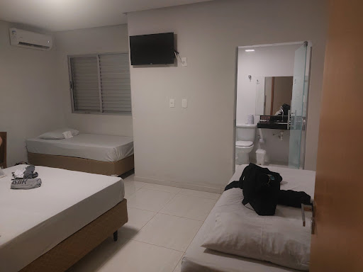 Hotel novinho, quartos muito limpos e atendimento excelente, o moço da recepção Rafael, muito atencioso e educado. O café da manhã é muito bom, com muitas opções: pão de queijo, pão de sal, misto quente, torradas, bolos, torta salgada, canjica, cachorro-quente, ovos mexidos, iogurtes, frutas variadas, no dia em que fui tinha 3 tipos de fritas, quitandas, além de café, leite, suco natural de laranja e complementos como aveia, granola, cheia, toddy e etc. O estacionamento é amplo, atende desde carros pequenos até caminhões de grande porte. Tudo isso por um preço muito bom, o melhor da cidade....