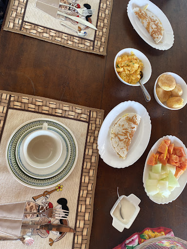Read moreEsse espaço foi um achado. A localização é ótima e o espaço é muito bom, arejado e com uma decoração rústica maravilhosa - com alguns detalhes feitos pelo casal. O quintal é lindo e tem uma piscina que parece ser ótima. Tem chuveiro quentinho, ar condicionado, roupa de cama e banho cheirosas. O café da manhã é simples e delicioso. Mandaram um questionário perguntando nossas preferências para deixar o café mais a nossa cara - achei ótima essa ideia. Oferecem ainda serviço de churrasco, o qual não provamos. O charme do lugar são as 2 cachorras, uma mais fofa que a outra. Infelizmente não ficamos mais tempo, mas com toda certeza voltaria...