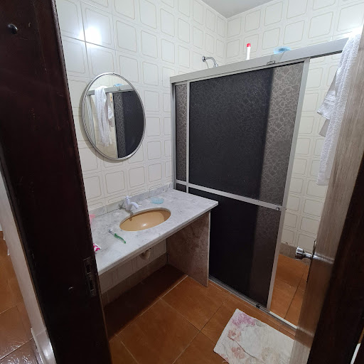 No banheiro do quarto, O papel higiênico era de péssima qualidade, tivemos que ir ao mercado comprar uns rolos para ter um pouco de dignidade ao usar a privada. A posição das torneiras do banheiro não segue o padrao de água fria na direita e água quente na esquerda, minha esposa quase se queimou ao abrir os registro. Tomem cuidado, aqui a água fria era na esquerda. Não foi fornecido shampoo para o banho. Mais uma vez fomos ao mercado comprar shampoo.