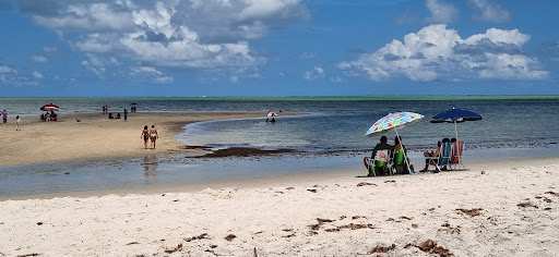 Em compensação, posso falar do local. A praia tem sargaço, mas nada exorbitante, como já ouvi falar. O que vi não atrapalha em nada a experiência. Local calmo e tranquilo, mesmo sendo um domingo. Para os que gostam de banho de mar, é bom observar a tábua de marés. Cheguei às 9h, com a maré baixando. Às 12h já havia bancos de areia e a água estava na altura dos tornozelos.