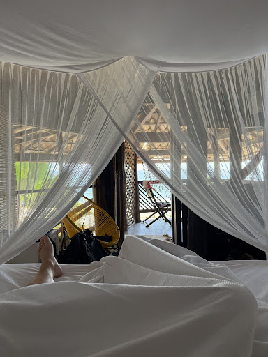 Read moreAMAZING We slept on the top room with ocean view. It is a small, intimate room made of wood, kind of rustic with good sense of design, clean and comfortable. To sleep there with the noise of the waves breaking on the shore and the sea breeze with no A.C. was an incredible good experience. Right in front of one of the nicest beaches on the area and probably the best surfing wave: Tiririca There are some restaurants for lunch on the beach. The localization is perfect. Only 10 minutes walking through a beautiful street surrounded with native vegetation to the town center where are all the restaurants. The breakfast is very good with different options day by day and ocean view. The service is great, my special gratitude to the owner Nelly, Manu, and Edilene for the attention. I highly believe is the best place to...