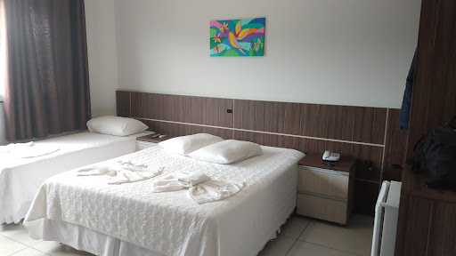 Read morePor ser um hotel executivo deveria oferecer uma cadeira melhor junto a mesa do quarto. Colchão muito mole e une dois de solteiro pra formar cama de casal. O ar condicionado é direcionado para cima da cama. A cortina é muito transparente: o sol e as luzes iluminam o quarto. O Frigobar é maior em tamanho (profundidade) do que o móvel e por isso provavelmente não resfria nada. A água mal fica fresca se colocar neste "frigobar" da marca Cadence, que é péssimo. O quarto estava limpo, mas tinha muitas formigas circulando pelo piso do quarto e banheiro. Já dentro do banheiro, ao tomar banho, a água se infiltrava pelo box e passava para o outro lado, deixando tudo ensopado. Passar uma noite no Hotel ainda vai, mas mais do que isso é impossível.||O café da manhã é horrível: Bolo abatumado, café passado sem sabor, produtos...