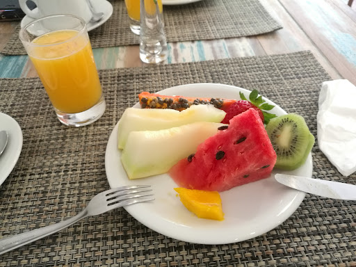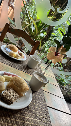 Read moreMe surpreendi positivamente ao chegar na pousada, esperava algo mais simples e pequeno. A estrutura é bem grande, e muito linda! Realmente a vibe do lugar é demais, pra relaxar mesmo. Quando você entra já sente o cheiro de incenso que te faz entrar na vibe. A pousada é cercada de verde, lugares para sentar, pequenas praçinhas, sofás pra deitar. A área da piscina é muito linda! Tem sala de cinema, sala de massagem e jacuzzi em cima. O café da manhã também é bem gostoso, na proposta diz ser um "pequeno café da manhã", eu imaginava algo bem diferente, pequeno mesmo hahaha. Mas tinha uma diversidade até que legal (claro, nada enorme comparado a outros lugares que já fiquei) mas como falei, esperava bem menos. Tem café, iogurte, sucos, água saborizada, diversos pães, frutas, bolos, cereais, etc. O quarto que ficamos, a suíte Pandawa era muito linda, cercada de vidro, então tem uma vista muito linda da área verde ao lado. Além de, ser o último quarto do corredor, assim não há circulação de pessoas, muito tranquilo e sem barulho! O que acho que poderia ter, é uma lixeira, no quarto (além da do banheiro), senti falta disso, para descartar embalagens do que íamos consumindo. Também estranhei não ter shampoo e condicionador, todas as pousadas que já fui tinham, mas nada que o mercado logo ao lado não pudesse solucionar. A localização é maravilhosa, é só cruzar a rua e ir pra praia. Eu sou suspeita pra falar, pois essa área de Mariscal, encostada em Canto Grande é minha preferida. Uma calmaria! Tem vagas para estacionar na frente e aos fundos, não é coberto e nem fechado, mas é uma área bem tranquila. Super recomendo! Minha...