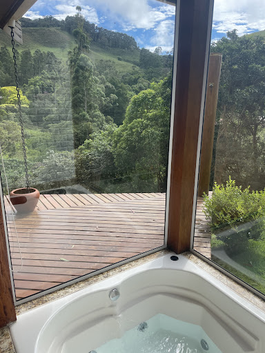Resumo da experiência: excepcional. Desde a chegada, com a atenção e carinho máximos da Damaris e do Emerson, por toda a estadia, até a saída, com um bate papo excelente com eles. Uma das poucas pousadas onde já nos hospedamos e fomos tão bem repecionados e cuidados. Chalés impecáveis, roupas de cama e banho muito bem cuidados, limpos e cheirosos. Chão brilhando, conservação do chalé um brinco, sem nenhum detalhe fora do lugar, tudo perfeito. Móveis com um toque muito especial, tudo bem desenhado e encaixado. Decoração especial, muito aconchegante. Deque com vista para uma paisagem muito bonita. São só dois chalés, proporcionando um ambiente bem reservado, pra acordar de manhã e só ouvir o barulho do riachinho que tem abaixo. Banheiro e banheira de hidromassagem limpos e muito bons. Todos os equipamentos funcionando perfeitamente. Pegamos um final de semana de chuva, pudemos curtir ao máximo o descanso ao som de chuva no deque, acalma a alma. Café da manhã no chalé, bem servido, tudo bem fresquinho e delicioso. Acesso fácil, perto da cidade e com estrada bem confiável. Tem um trecho pequeno de terra, mas até em dias de muita chuva não tem erro, é bem cascalhada.