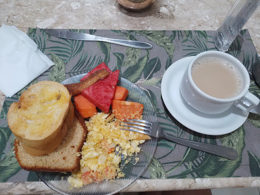 Read moreEntão, reservei de um domingo para segunda, finalzinho do feriado do dia 12/10. Começo falando pela localização, fica bem próximo à praia, não é próximo do foco, onde fica o letreiro com o nome “ João Pessoa “ mas a localização é boa. Se der sorte, consegue vaga na frente da pousada, como conseguir, caso não, tem ruas próximas que tem onde estacionar. Segundo ponto, para entrar e sair da pousada, tem que pedir para alguém da recepção abrir a grade, pois não fica aberta, não gostei muito disso, sempre tá esperando alguém abrir e fechar. Fiquei no quarto 122, já no finalzinho mesmo, o quarto em si é bem simples, porém aconchegante, a cama é boa, o ar-condicionado por mais que seja daqueles mais antigos, que fica encaixado na parede, gela bem, só faz um pouco de barulho, mas nada que atrapalhe. Sentir falta de tomadas livres, para carregar celular e etc… as tomadas que já estão sendo usadas pela televisão e frigobar, frigobar o qual fica encima de um banco, não sei porque. Tomada livre só no banheiro, banheiro o qual é totalmente simples, mas para 1 dia, não faz diferença, chuveiro elétrico, água quente, único defeito, é que onde toma banho, se tem uma cortina, invés de um box, mas como só passei uma diária, não vi problema. Café da manhã é muito fraco, poucas variedades, não sei se como foi na segunda e só tinha além de mim e minha noiva, mais 2 quartos ( hóspedes ) fizeram um café assim. Mas independente, achei poucas opções. O pessoal da recepção atende bem, são educados, nada a reclamar. Paguei 155,00 reservando pelo Booking, é minha opinião final é: se for para passar só uma diária, vale apena, se pretende passar um fim de semana ou mais dias, no Booking encontra pousadas na mesma faixa de preço e com uma estrutura melhor. Como reservei em feriado, não tinha muitas opções. No...
