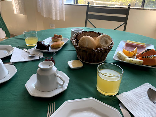 Compramos um pacote com pensão completa! O café estava ok, no almoço e na janta a comida era muito saborosa, mas a variedade era pouca. Sem contar que o garçom era péssimo e esquecia tudo e não tinha ventilação ou ar no espaço das refeições.