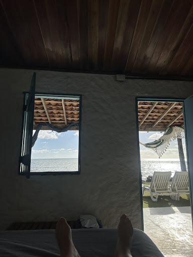 Read moreA pousada possui 4 quartos de frente pro mar, a decoração é uma pegada rústica, a cama é bem confortável, os banheiros são espaçosos, os chuveiros são elétrico, tem ar condicionado e televisão, e o café da manhã é delicioso. Os funcionários são um show a parte, sempre muito atenciosos e dispostos a resolver qualquer problema, uma ressalva especial para o Paulo que sempre se mostrou muito prestativo, desde a cerveja geladinha no freezer até o maravilhoso passeio de barco feito por ele mesmo. No período em que fomos a cozinha funcionava apenas para o café da manhã, então tivemos que pedir comida fora, eles possuem ótimos parceiros locais, recomendo o camarão crocante e o peixe a potiguara do "Tempero da Cris" e a pizza espetacular do 'Recanto das Margaridas". Se for em alta temporada provavelmente haverá algum(a) chefe no comando do restaurante. Vá sem medo e se pressa de voltar porque o lugar e as...