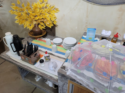 O café não tem um variedade gigantesca, mas tudo é muito bem feito e gostoso, com aquele gostinho de comida caseira e uma vista DESLUMBRANTE do mar que faz qualquer café da manhã ficar mais gostoso!