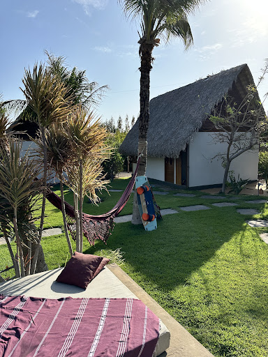 The bungalows are beautiful and the bed is super comfortable. The rooms include a mosquito net, hot water, a kite/kit locker, and a fridge stocked with beer and soft drinks.