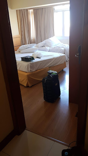 This hotel looks brand new and has a great location in Pelotas downtown area, the building has a feeling of a regular apartment building. The rooms are in a regular size for a hotel, with small tv, AC and a small working desk. The shower it's a little old and could get an improvement. My "king" bed, was two beds put it together, which isn't my favorite thing in a hotel, the rooms don't have much privacy as most of the face each other, so you need to keep the blinda closed at all time.